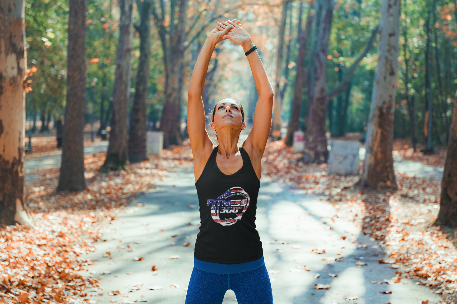 A high-quality print of this slim fit tank-top will turn heads. Bystanders won't be disappointed - the racerback cut looks good on any woman's shoulders.